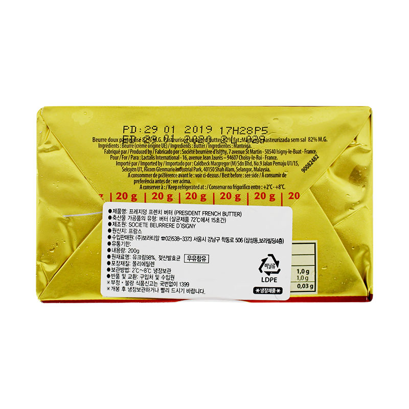 버터를 구매할 때는 버터의 성분표를 자세히 보셔서 유크림 함량이 80% 이상 인 것, 원재료에 가공버터가 써있지 않고, 축산물가공품 유형이 '버터'(가공버터는 아니에요!)로 표기 되어 있는 제품인 천연버터, 발효 버터를 사는 것이 좋습니다.
